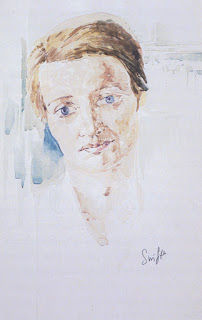 Snu Abecassi (Danish-born journalist and editor who founded the Portuguese publishing house, Publicações Dom Quixote; Francisco de Sá Carneiro's partner), by Patrick Swift (1927-83), watercolour, c.1980 (poor quality reproduction)